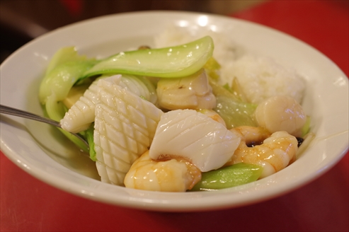 まだまだ寒い日が続き、温かいものが食べたいなぁということで野菜スープを頼んだのですが、これ、正解!優しい味で、野菜がたっぷり入っているので体にも良さそうです。海鮮ご飯も、たぶんはじめて食べたのですが、プリプリの海老や噛むと甘みがジワジワと出てくるイカ、味付けも薄味で美味しかったです。中華料理って、食べ終わると、油がベットリ残るようなものが多いですが、こちらの料理は、そういうものが少ないような気がします。たまたま自分が注文するものがそうなのかもしれませんが。