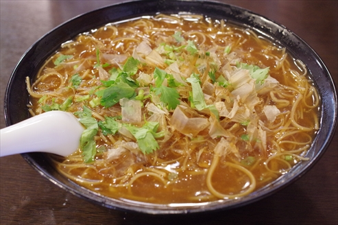 こちらのお店の麺線は、トロミたっぷりの酸辣湯にカツオ節をのっけて、パクチーをパラパラとふりかけたような味でした。麺線を箸でつかんでスープから引き上げようとしても、トロミが強いので麺にからまったスープの重みで、大部分はスープに落っこちて行くということを繰り返しながら食べることになりました(笑) 麺を食べているというよりも、トロミを食べているような感じで、口の中で、ほとんど麺の存在を感じることがありませんでした。個人的に、酸辣湯が苦手で、パクチーも苦手で、さらに食べづらく、「これが2年間も楽しみにしていた料理の正体だったとは・・・」と、ちょっと残念な気持ちになりました。