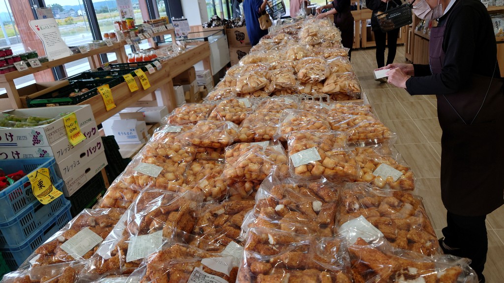 岩塚製菓の直売所があり、お菓子、特におせんべい好きな私としては行かないわけにはいきません(笑)